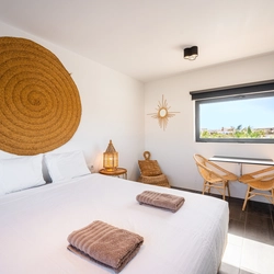 Here you can choose a single, double or bunk room in a residential building. By the way, this house belongs to the pro surfer Alex Zirke and it can happen that you have breakfast together with other pro surfers. You can also move to the apartment, which has its own pool with a sea view.