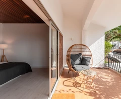 The suite is like a self-contained little house. The large bathroom in the suite even has an incredibly comfortable bathtub! From the bedroom with the large double bed you have a direct view of your own balcony and the garden.