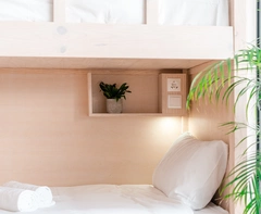 The 4-person dorm is ideal for single travelers or groups who would like to save a little on accommodation or spend most of the day outside and would rather go out to eat a few more times. This room is very cozy and minimalistic so that everyone has enough space for their belongings.