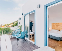 Three of the five double rooms have direct access to the terrace, from which you can enjoy the sunset and watch the waves.