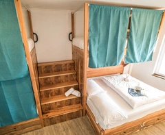 There is space for up to 6 people in the shared room, where surfers, backpackers and solo travelers from all over the world meet to share their experiences. In addition to the 3 bunk beds, there are also cupboards to store luggage.
