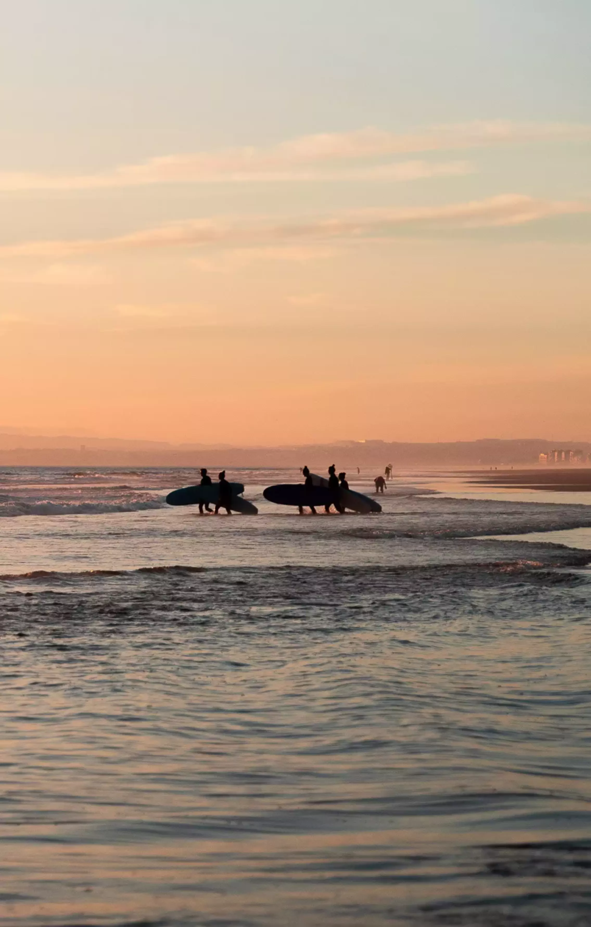 The Beachfront Surf Camp Caparica is located directly on the house beach Fonte de Telha and offers ideal waves for beginners and advanced surfers. Depending on the weather and wave conditions, the surf course also takes place on the beach of Paraíso and São João, with empty line-ups and beach restaurants.