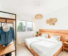 Unser gemütliches Surfcamp liegt an der Nordküste der Insel São Miguel und überzeugt mit einem wunderschönen Blick in die grüne Vulkanlandschaft. In der Nähe befinden sich die Strände Praia do Areal de Santa Bárbara und Praia do Monte Verde.